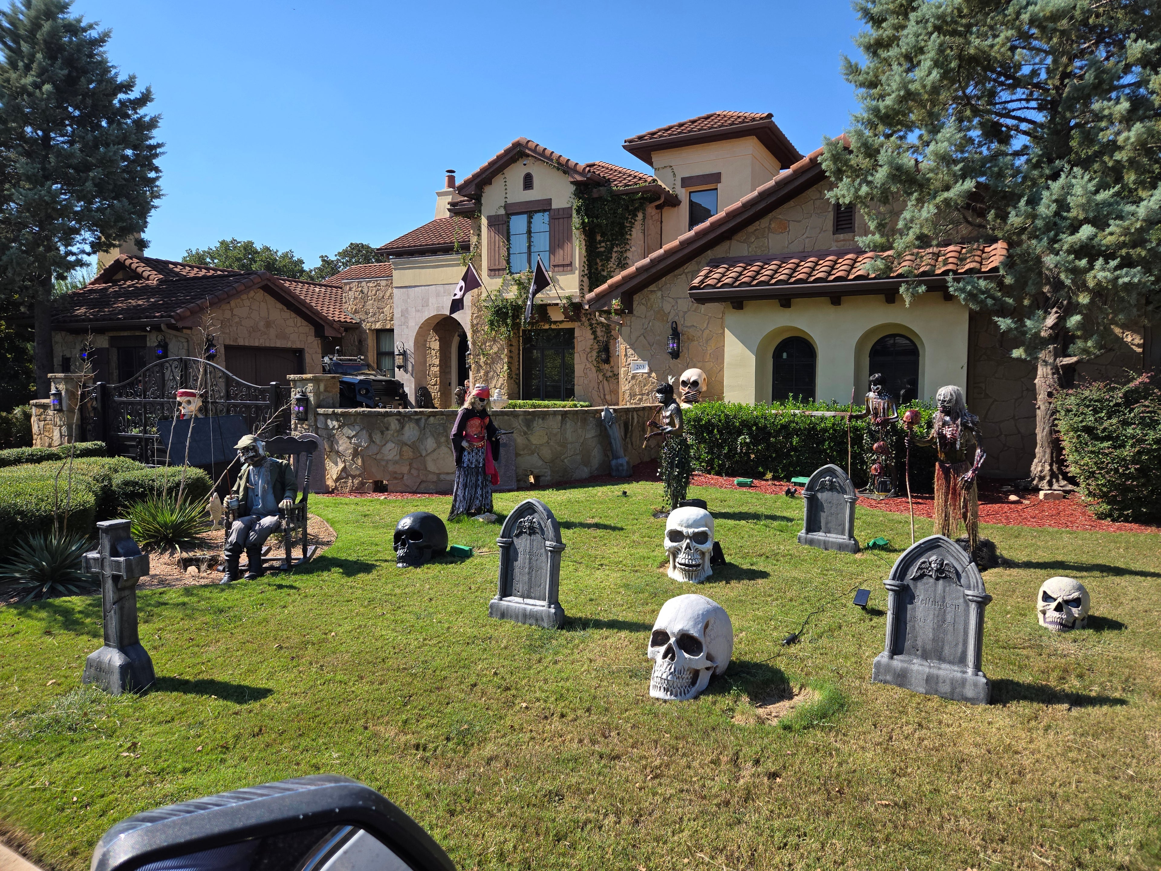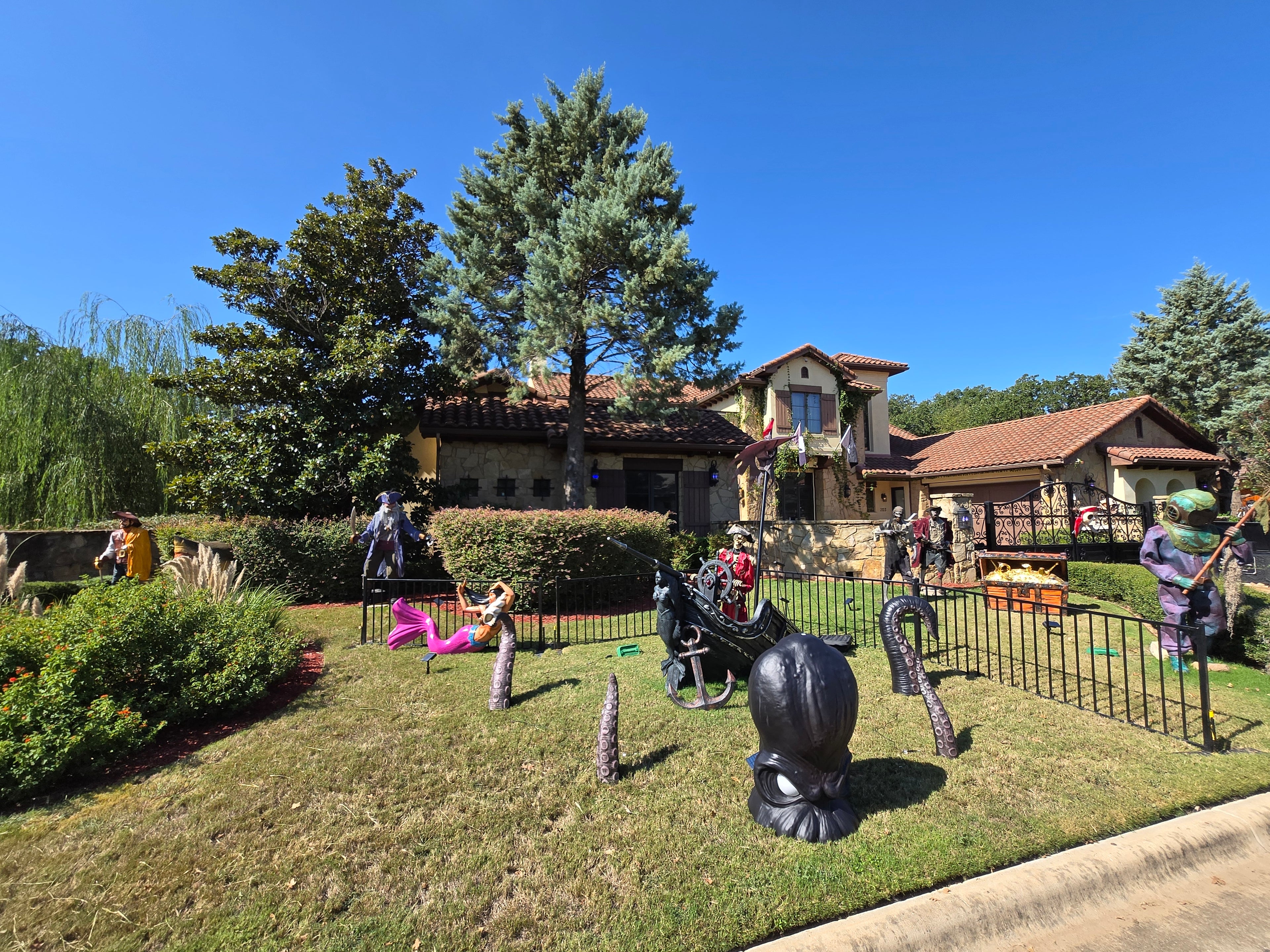 Located at 201 Flint Ridge Trail, between Plague of Pirates and Alien Invasion — follow the brick driveway into the fenced courtyard.